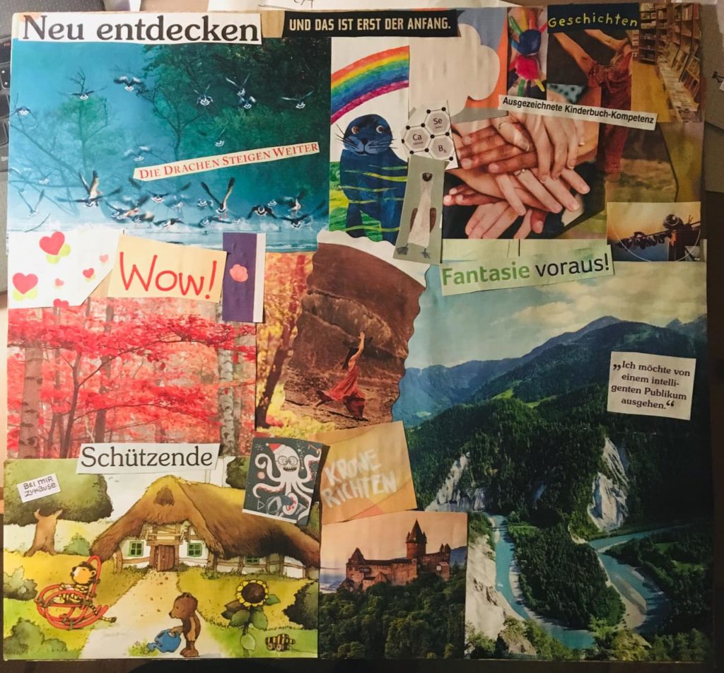 Siehst Du es auch? Das Schreiben hat einen ganz großen Platz darin. Und zwar ganz konkret - das Kinderbuch-Schreiben. „Fantasie voraus!“ Die Autorin in mir wusste schon im Herbst, wo es hingeht und nicht erst seit meiner WOL-Heldenreise. Manches ist schon da und doch wird es einem erst später bewusst. Das ist die Macht des Visualisieren: Unbewusstes wird sichtbar.